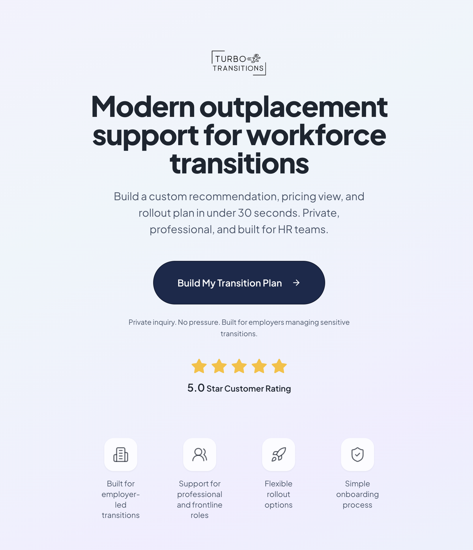 | Resume & LinkedIn help | TraditionalMay involve queues and longer turnaround. | TurboTransitionsEmployees can build top tier resumes immediately + resume coaching support. |